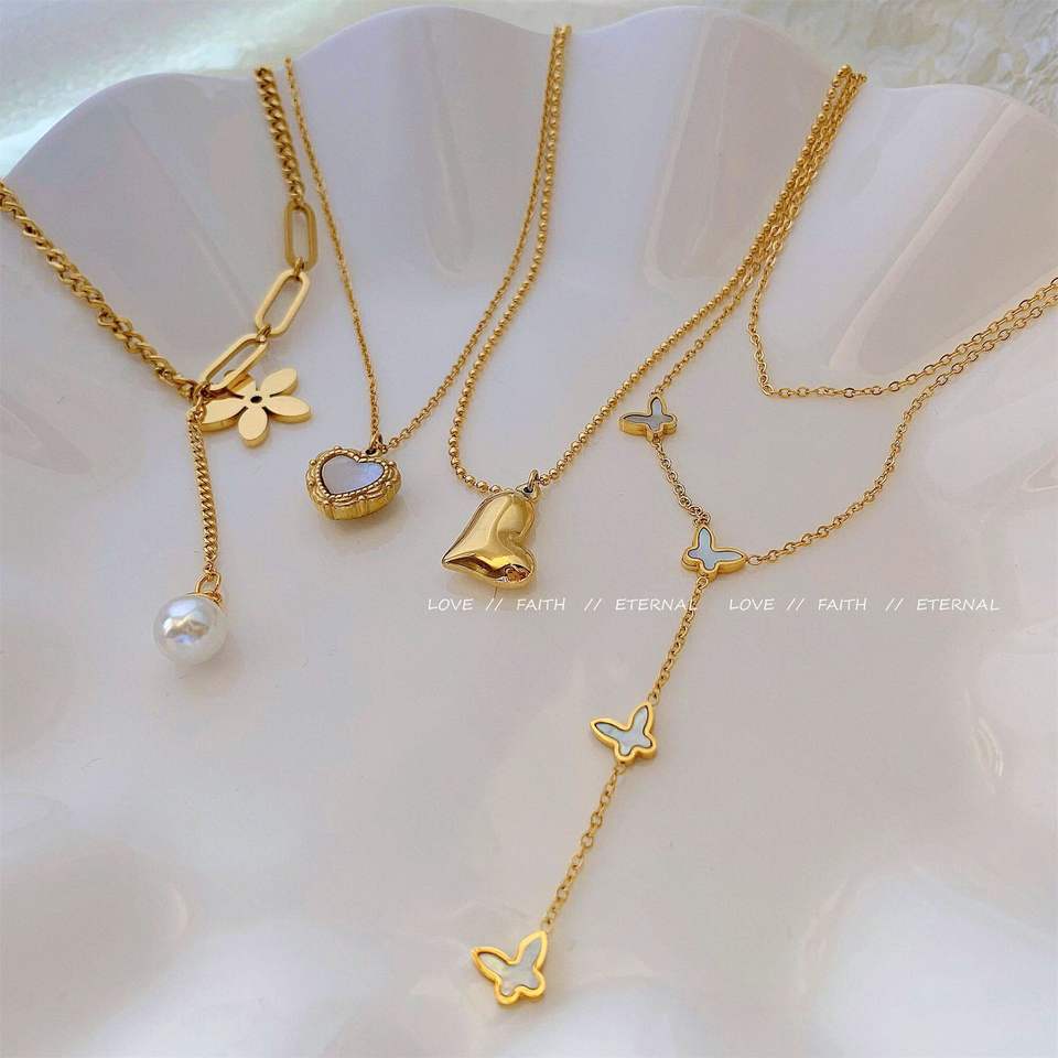 Collana XIXI Antiossidante con Ciondolo a Cuore e Farfalla in Acciaio Inox 18K Placcato Oro con Zirconi per Donna