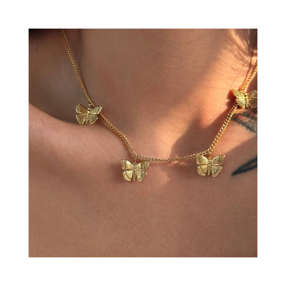 XIXI all'ingrosso personalizzato appannamento senza farfalline da donna ciondolo in acciaio inossidabile placcato oro 18K collane di gioielli di moda
