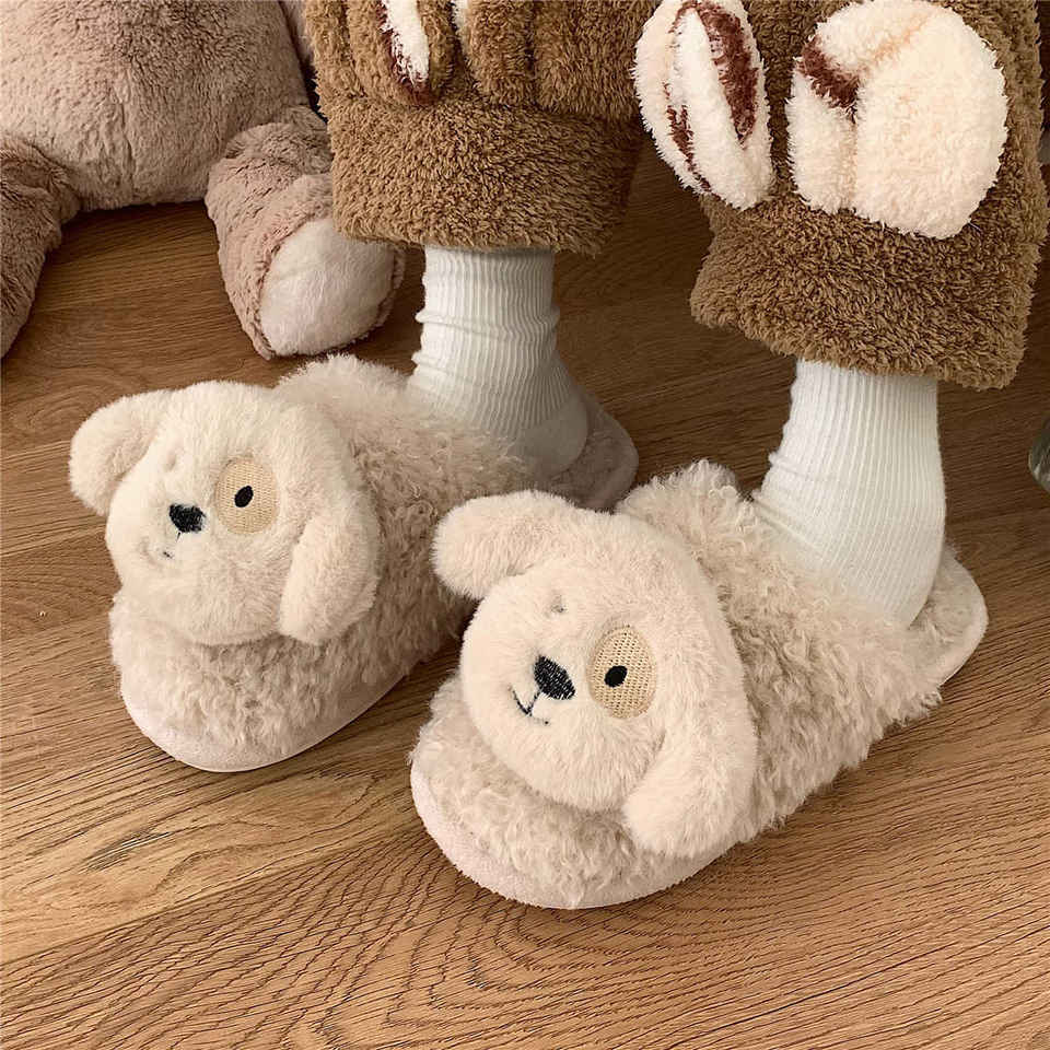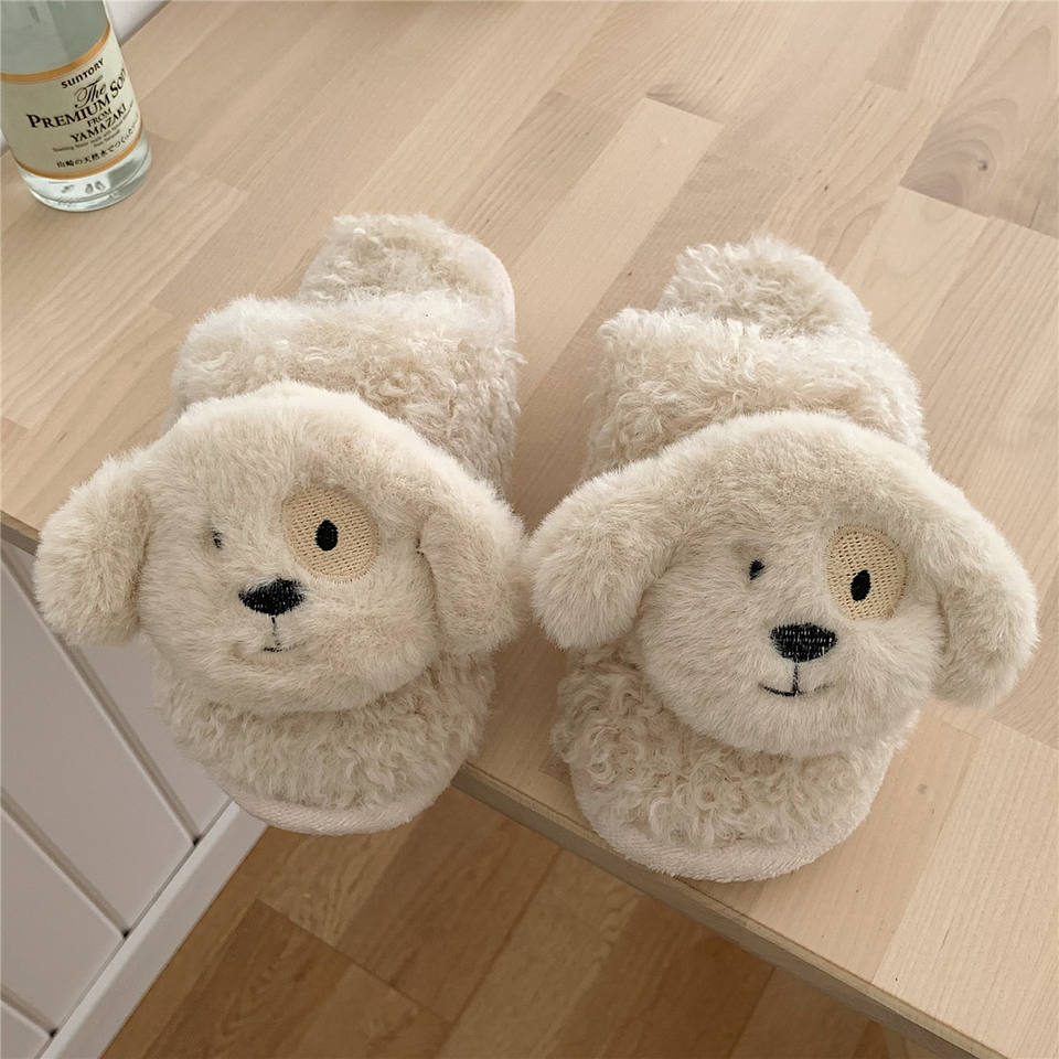 XIXITIAO pantofole da interno in cotone inverno casa donna animali 2023 soffice peluche con cani grande occhio di pelliccia di cane pantofole in shearling