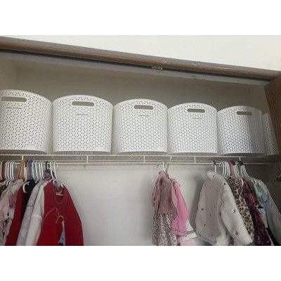 Cesto portaoggetti decorativo curvo XL, in plastica bianca intrecciata a Y, impilabile, con manici ritagliati, cubo da 11 pollici, compatibile con cesti intrecciati