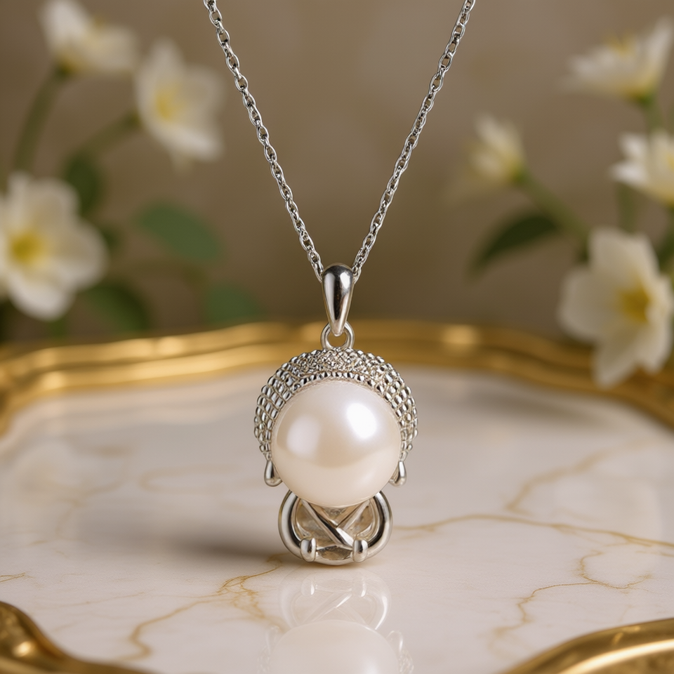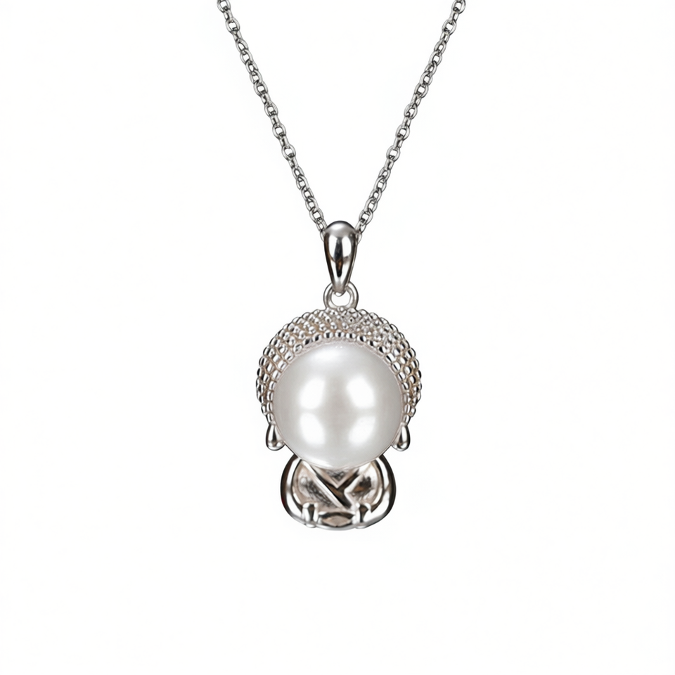 XL1361 Women's 925 Silver Cultured Pearl Pendant Round White Gold Plated Rhodium Classic Solitaire Everyday Wear Jewelry