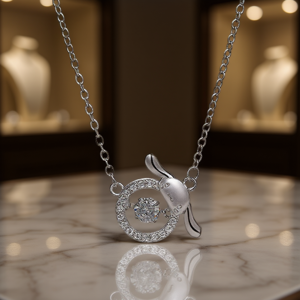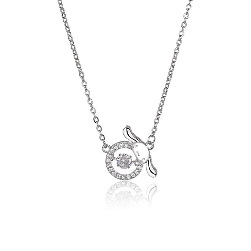 XL1519 Cartoon Pendant Necklace 925 Silver Round Brilliant Cut Crystal Rhinestone Cute Everyday Wear Unisex Link Chain