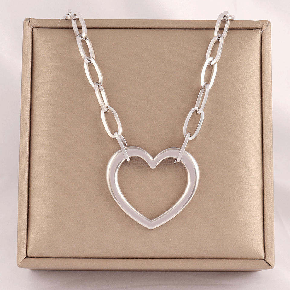 XL258 Collane con Grande Ciondolo a Cuore in Acciaio Inossidabile per Donne, Collana a Catena con Pendente a Cuore Stile Punk, Gioielli per San Valentino