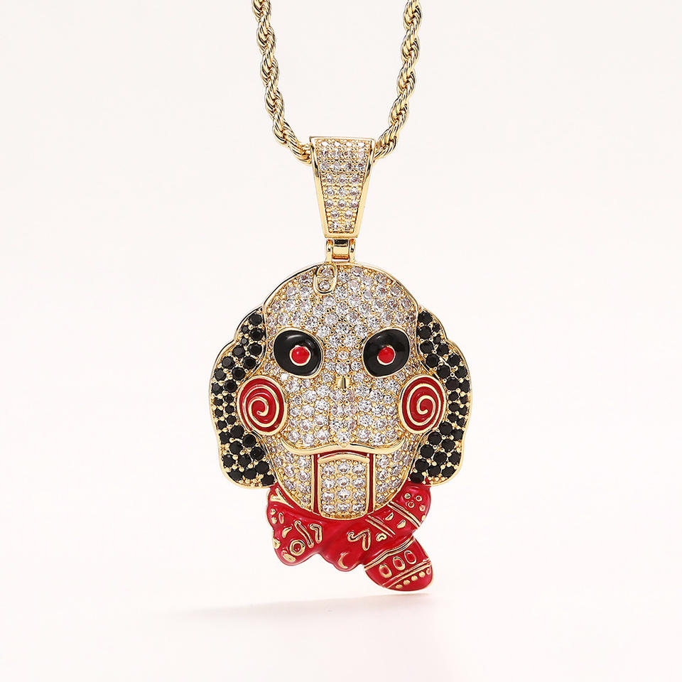 XL721 Cartoon Pendant Necklace Gold Plated Zinc Alloy Cubic Zirconia Pave Setting Hiphop Unisex Everyday Wearing Gift