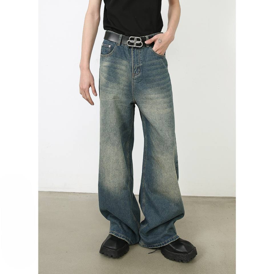 XMAMLON Custom Mens Retro Gray Black Blank Denim Stacked Jeans Pants Leg Baggy Jeans Loose Wide Leg Straight Fit Cotton for Men