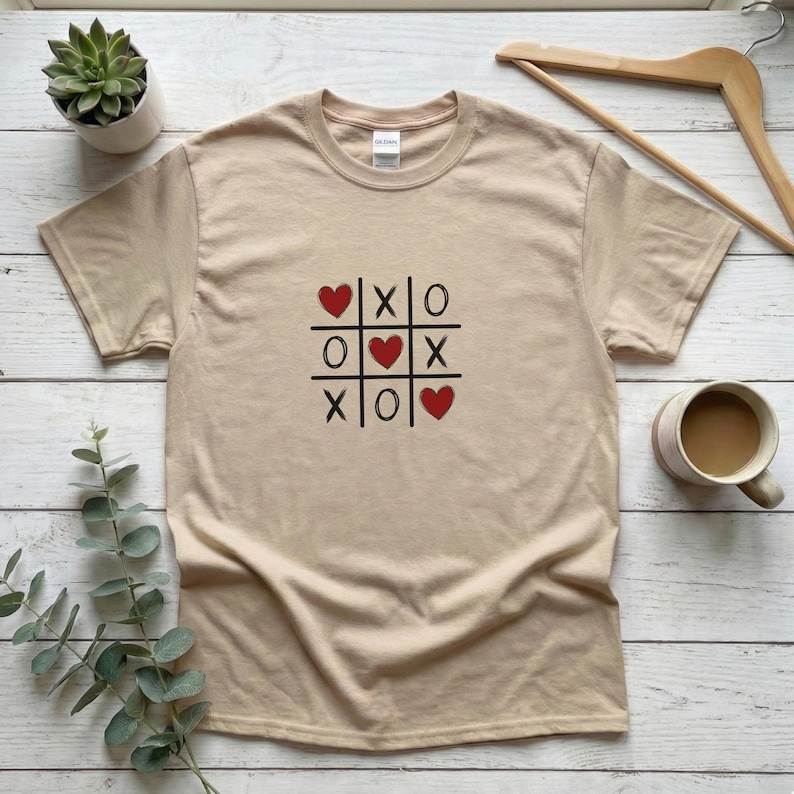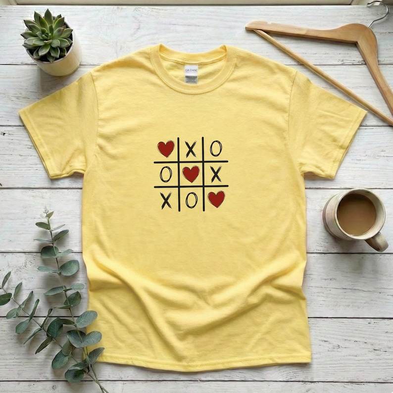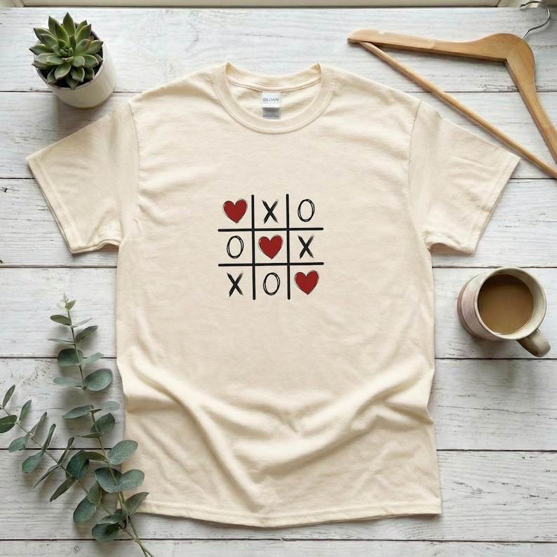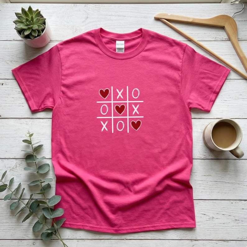 Maglietta XOXO, Tic Tac Toe Heart, maglietta in cotone per San Valentino per donna