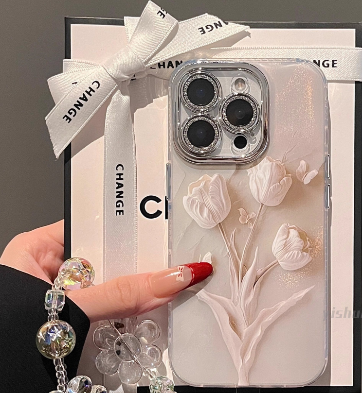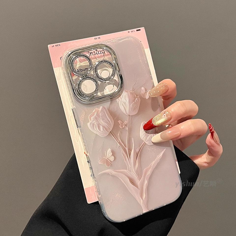 XP104 tulipani rosa pallido custodia per telefono adatto per iPhone 17PROMAX 16PLUS 15PRO 14 13 12 11 nuovo