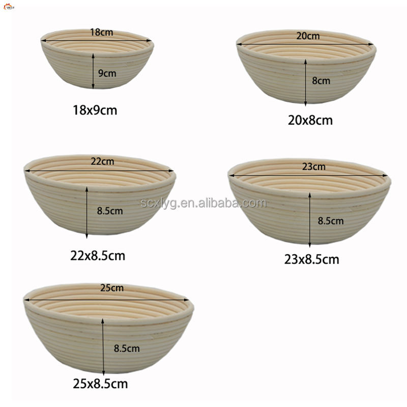 XR vendita all'ingrosso 7/8/9/10 pollici rotondo naturale della canna Indonesia di fermentazione Rattan pane Banneton cesto di prova con fodera di stoffa