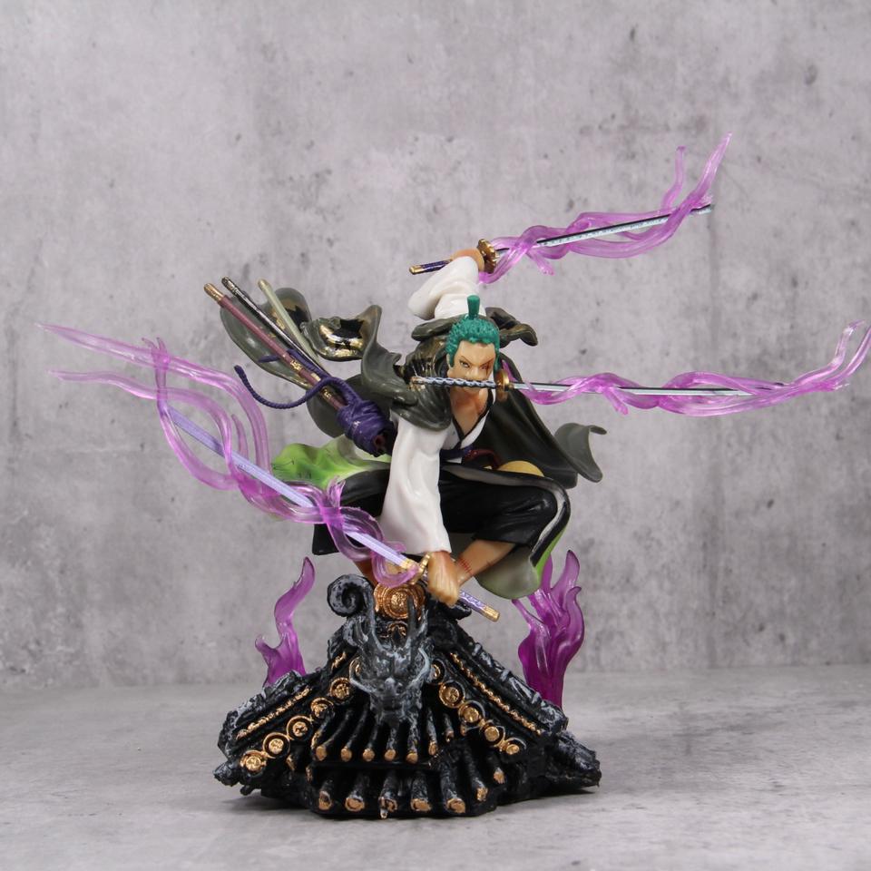 XRH Statuetta Anime One Piece Roronoa Zoro GK Wano Roof Tre Spade Action Figure Manga Giapponese PVC Alta Qualità 12+ Anni Unisex