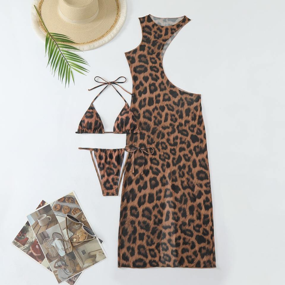 XS Clothes 2025 Summer Female Swimsuit Leopard Print Swimwear Beachwear Sexy 3 Pcs Bikini Set Bathing Suits for Women