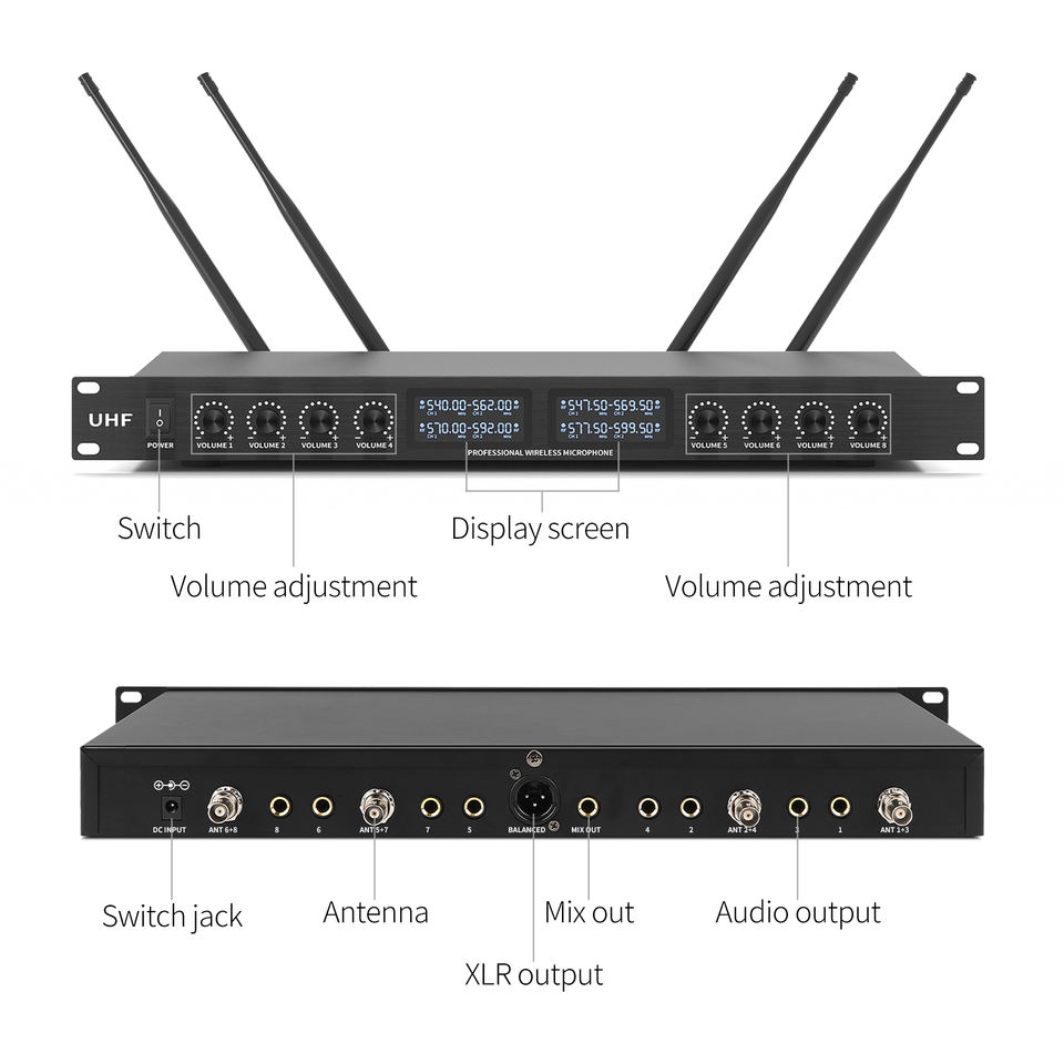 XTUGA YT8 Microfono Wireless Professionale a 8 Canali UHF per Sale Conferenze