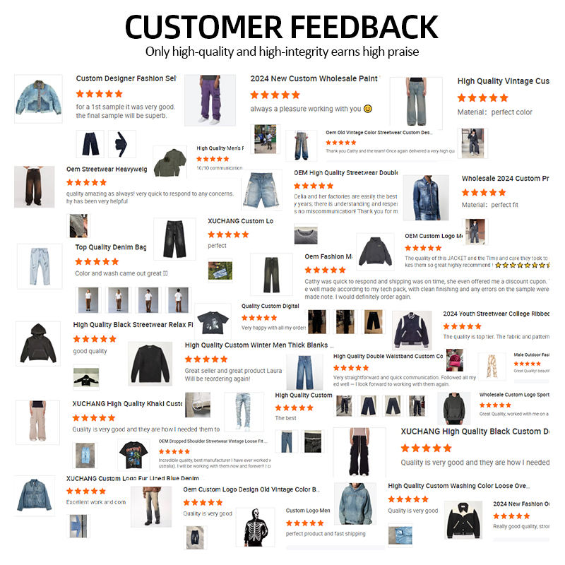 Jeans Originali XUCHANG di Alta Qualità in Denim Solido 100% Cotone Organico Vintage a Gamba Larga Design Personalizzato Lavato con Stampa 3D per Uomo