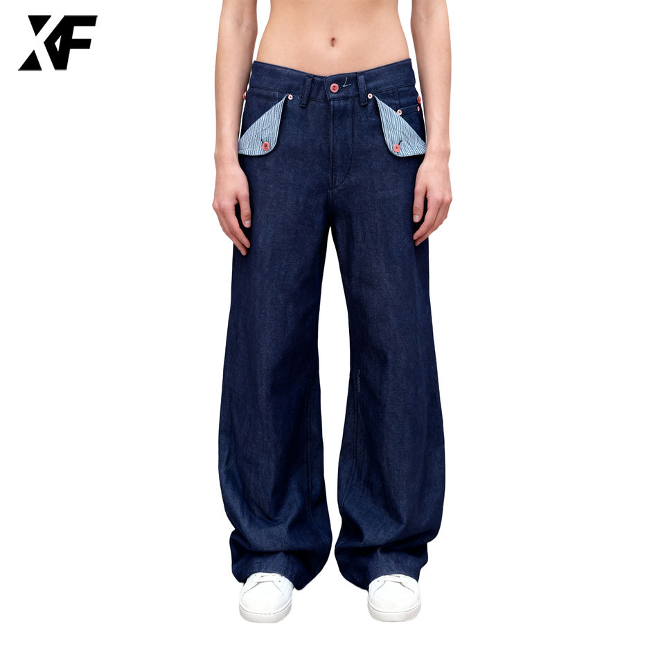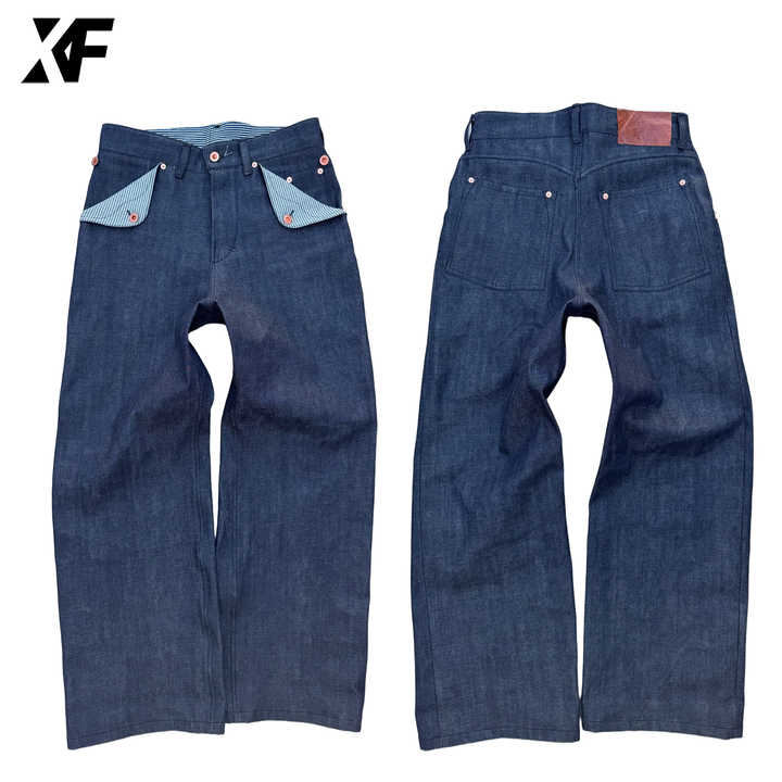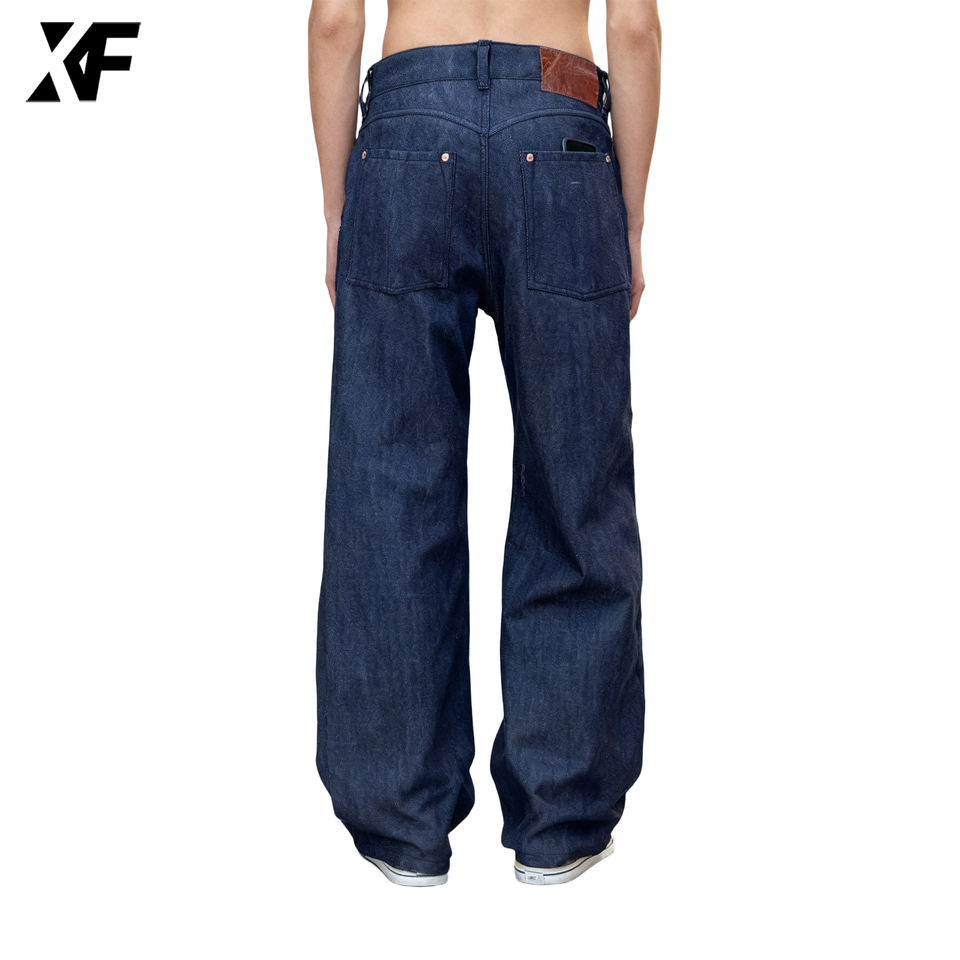 XUFEI Jeans Originali da Uomo in Denim Grezzo Giapponese Selvedge, Design Vintage Personalizzato, Vestibilità Larga e Dritta, Colore Indaco Scuro