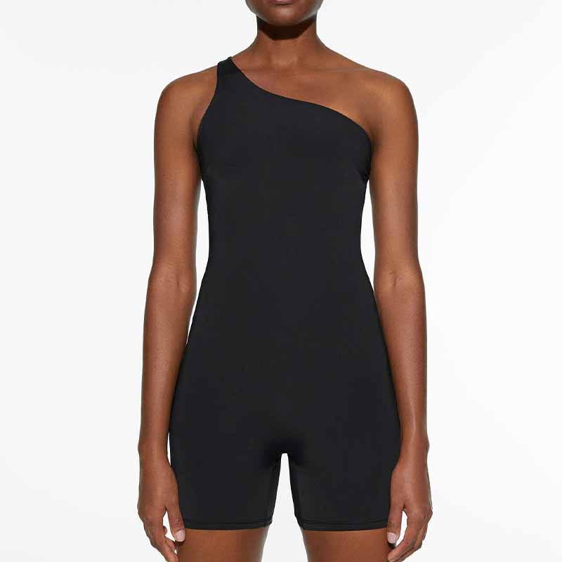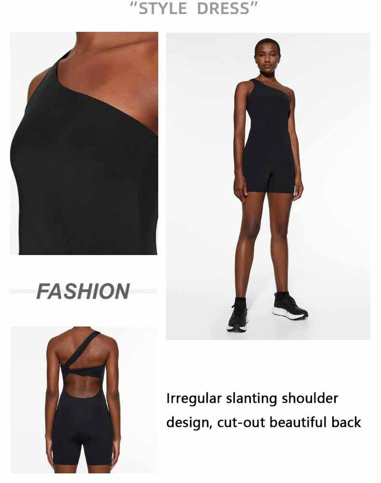 XW-FNK-6625 tuta da Yoga per Fitness monospalla con Design corto nero modesto