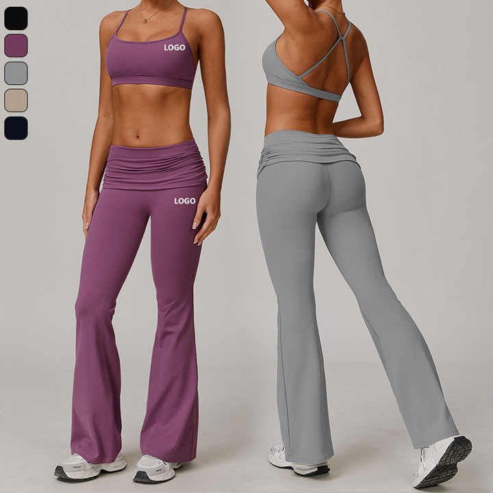 XW-TZ8347-2 tuta da Yoga attillata ispirata alla nuvola di reggiseno Casual ad asciugatura rapida pantaloni da corsa per il Fitness in tinta unita Set Yoga