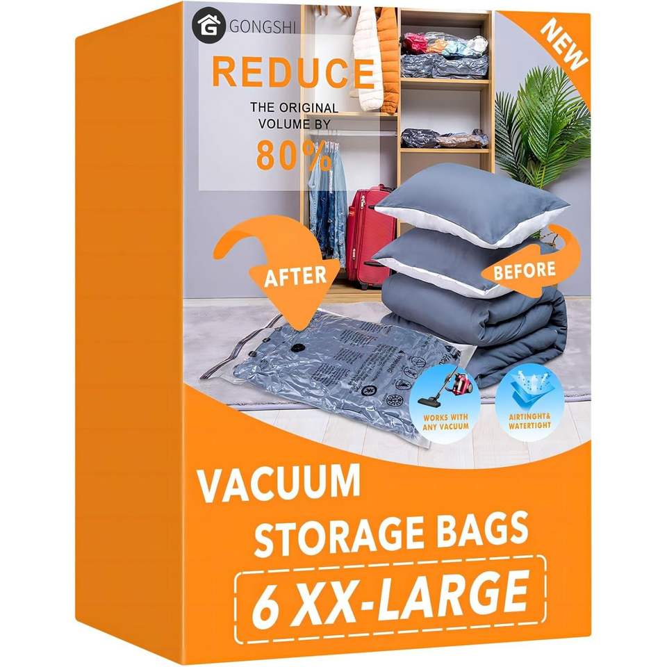 Sacchi Sottovuoto XXL Salvaspazio a Compressione per Coperte, Piumoni, Cuscini e Vestiti - Confezione da 6