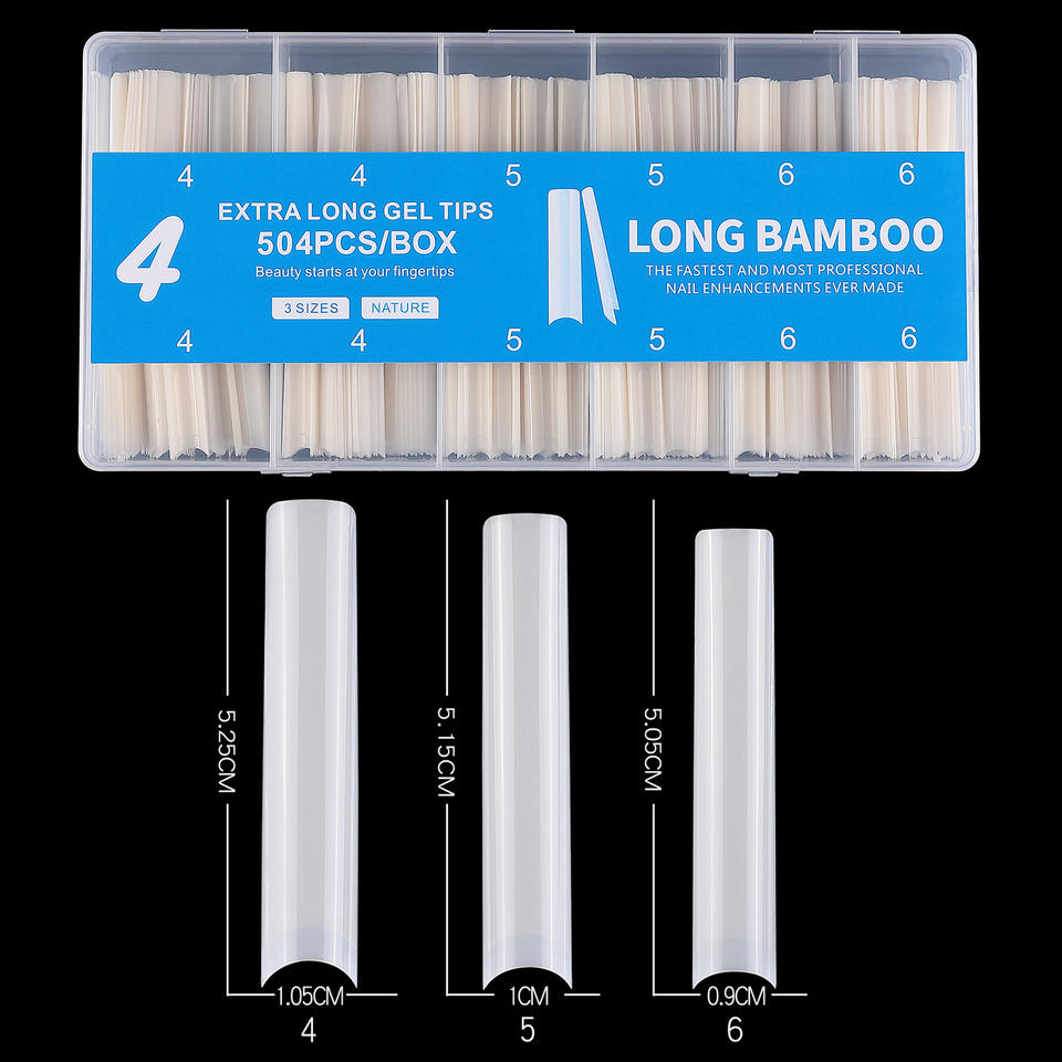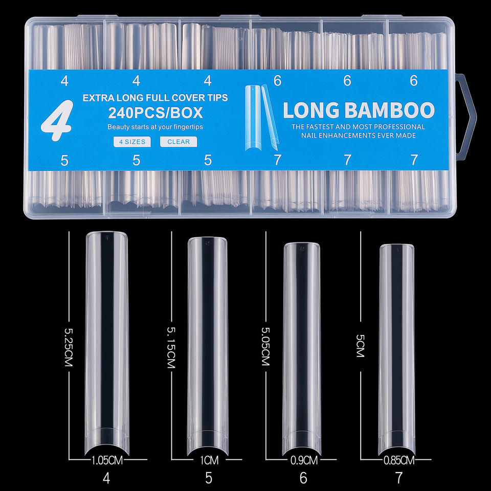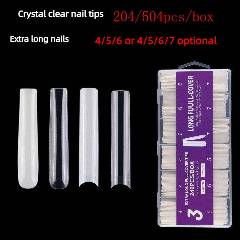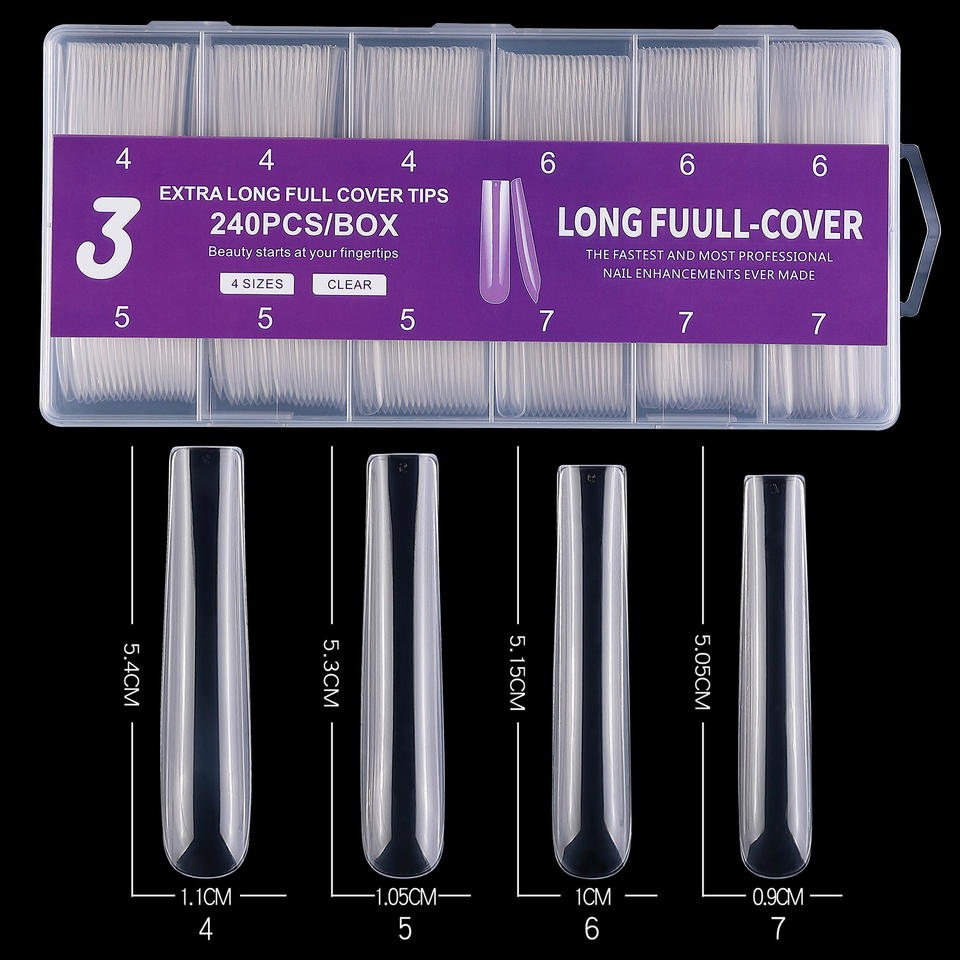 XXXL Extra Long Clear Gel X Nail Tips ABS Soft Material Half Full Cover Coffin Nail Tips Wholesale Custom Brand Logo