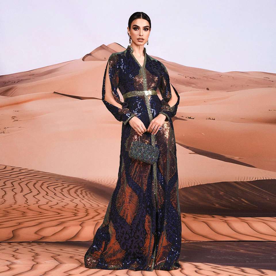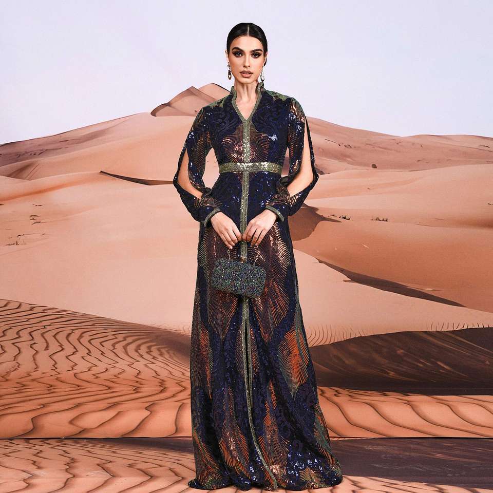 XY548 Long Sleeve Sequin Women's Dresses Arabic Istanbul Moroccan Turkish Dubai Modest Evening Party Dresses Muslim Clothing