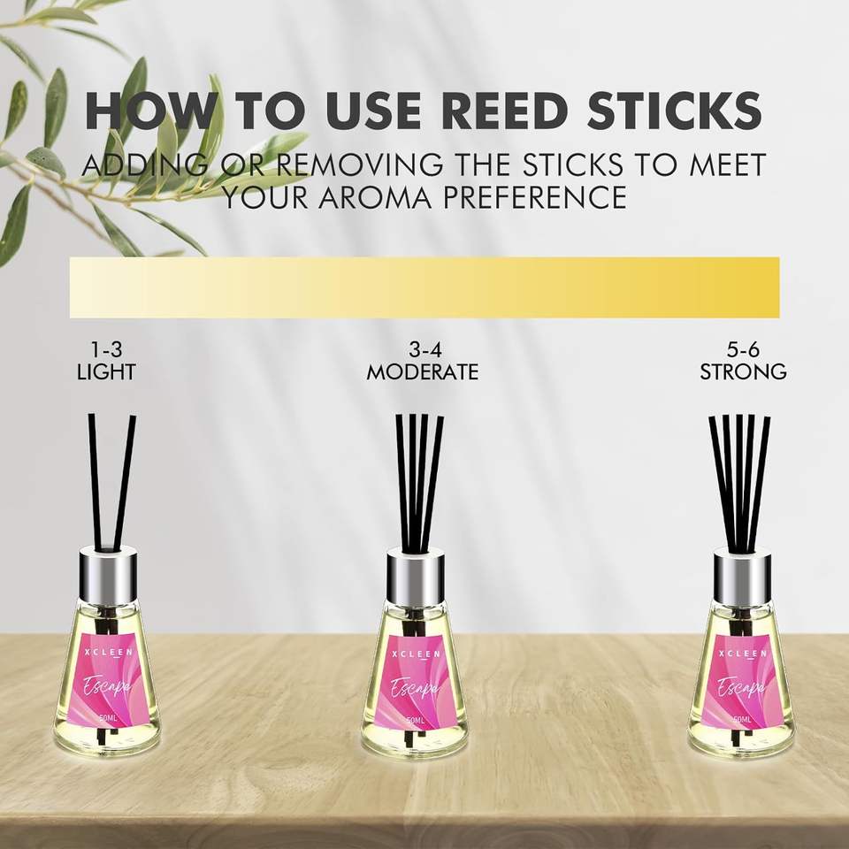 Xcleen Confezione da 3 Diffusori a Bastoncini 15 Pezzi Fragranza Escape/Vaniglia/Ambra Marocchina Senza Piombo Nebbia Calda Vetro e Rattan 50 ml Ciascuno