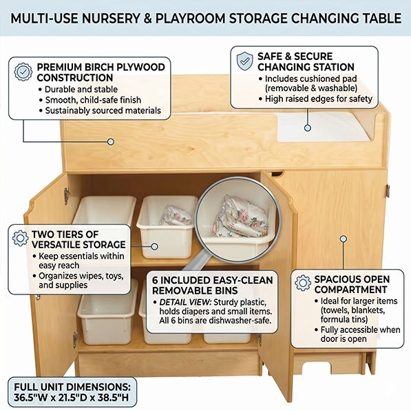Montessori Wooden Changing Table With Storage for Kindergarten Preschool Furniture Easy Maintenance Surfaces and Safe Design