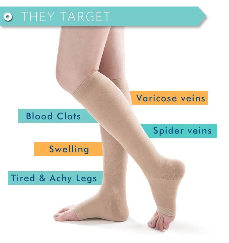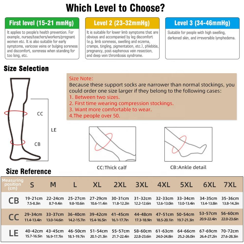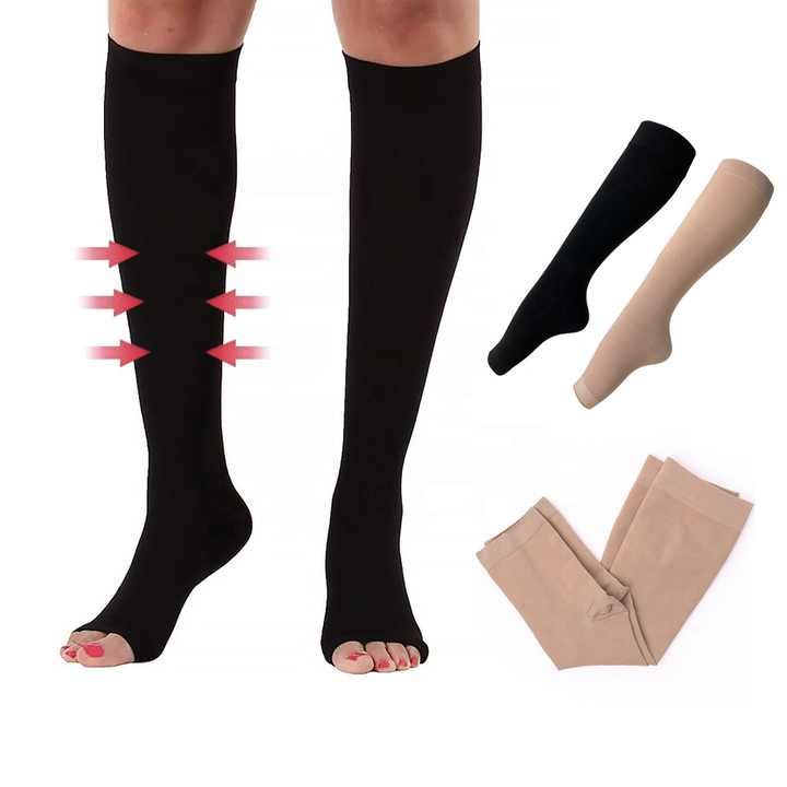 Calze a Compressione Medica Xiangzi 23-32mmHg Livello 2 per Vene Varicose, Calze Mediche a Punta Aperta per Polpacci