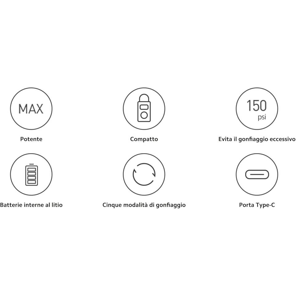 Compressore d'Aria Elettrico Portatile Xiaomi 1S con Display LCD, Sensore di Pressione e Luce LED per Gonfiaggio Pneumatici, Prodotto in Italia
