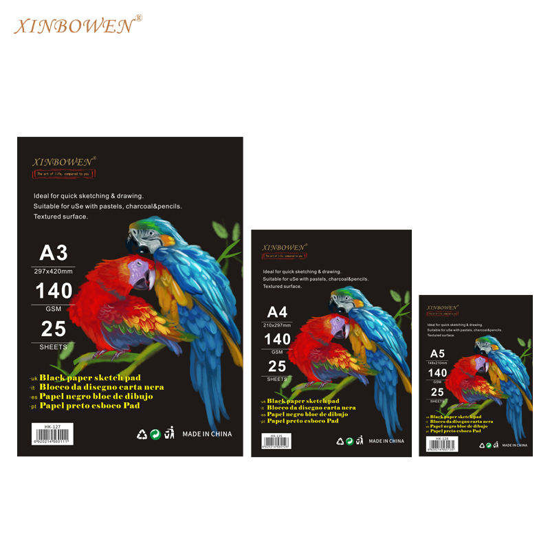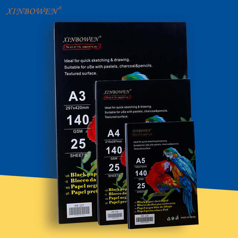 Xin Bowen Wholesale Professional A3 Drawing Pad 140 Gsm Sketch Pad Drawing Black Paper Card Easy to Carry for Artists