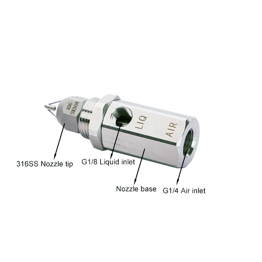 Xinhou 1/4 "di alta qualità a secco nebbia in acciaio inox ADG ugello di atomizzazione dell'aria per la soppressione delle polveri