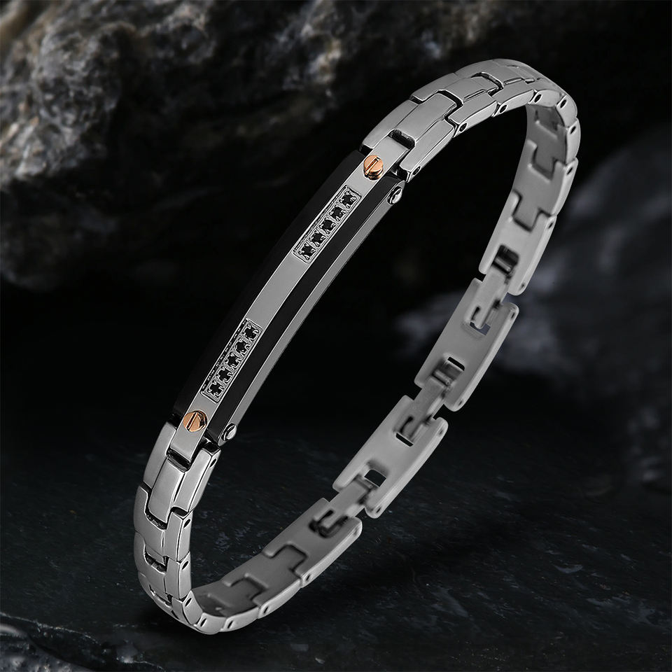 Xinyashang High-end Jewelry Supplier Stainless Steel Bracelets Black Zircon Engraved Designer Brand Men's Bracelets