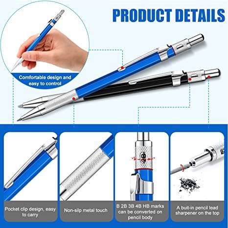 XinyiArt Artist Carpenter 2.0mm Metal Drawing Drafting Mechanical Pencils Automatic Pencil for Drawing Writing Art Sketching