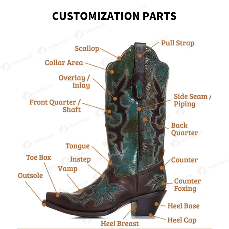 Xinzirain Stivali Texani Western al Ginocchio Personalizzati in Ecopelle Ricamata, Taglie Grandi 38-48