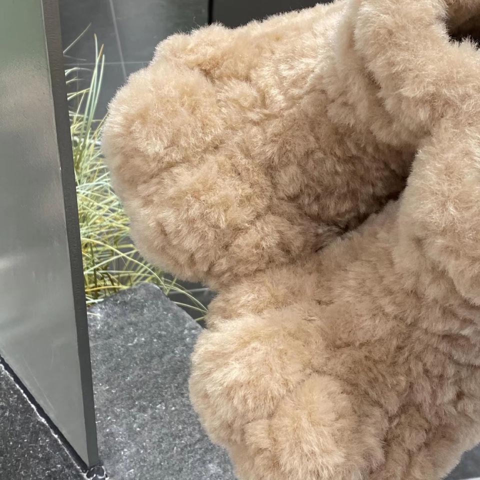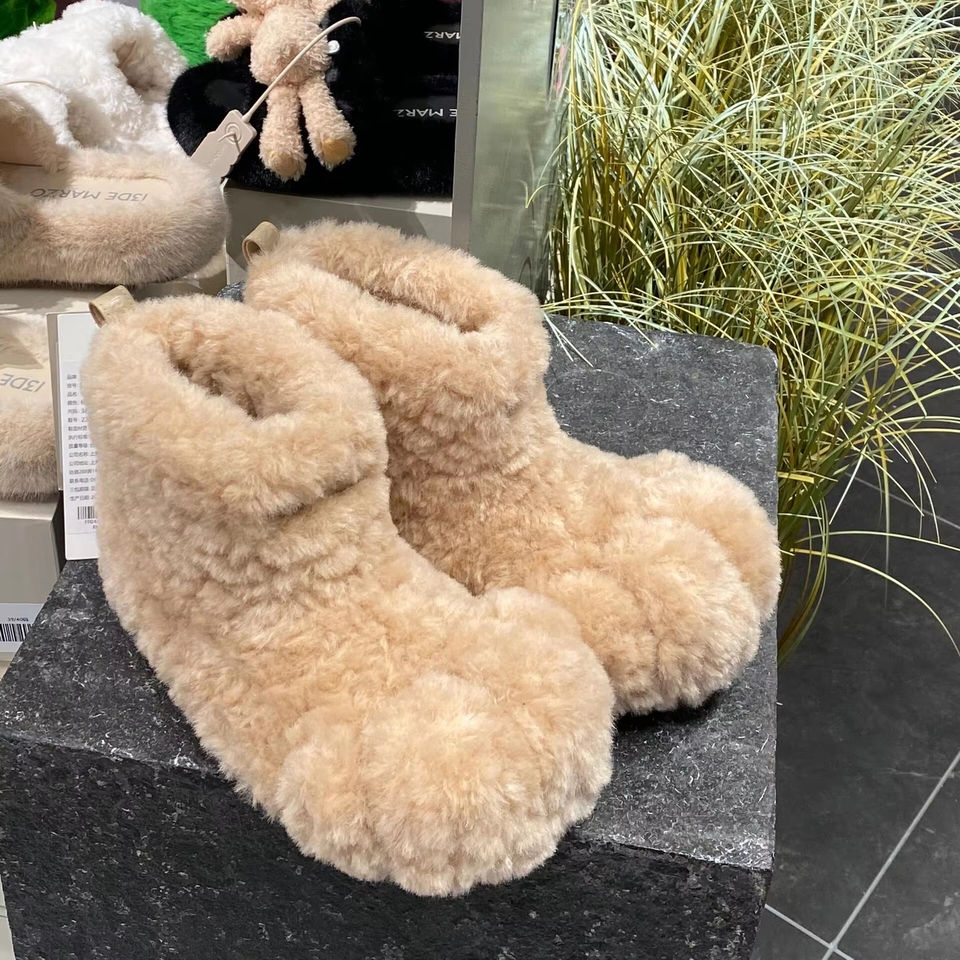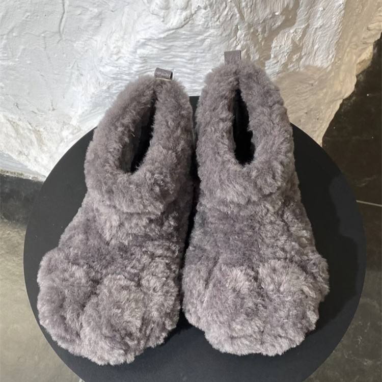 Xinzirain Custom Winter New Short Fur Boots Faux Fur Cat Paw Style Warm Lining Women Mid Calf Flat Heel Snow Boots for Ladies