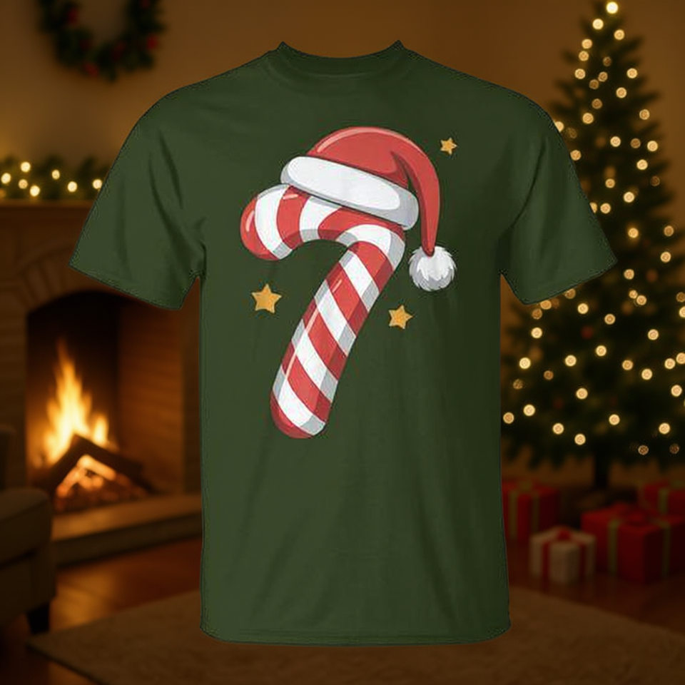 Maglietta natalizia coordinata con cappello da Babbo Natale e bastoncino di zucchero di Natale
