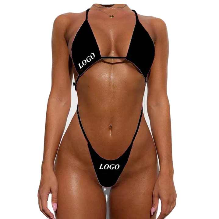 Xuanlang Costume da Bagno Bikini G-String Mini Micro con Paillettes e Logo Personalizzato, Estremamente Trasparente, per Donne