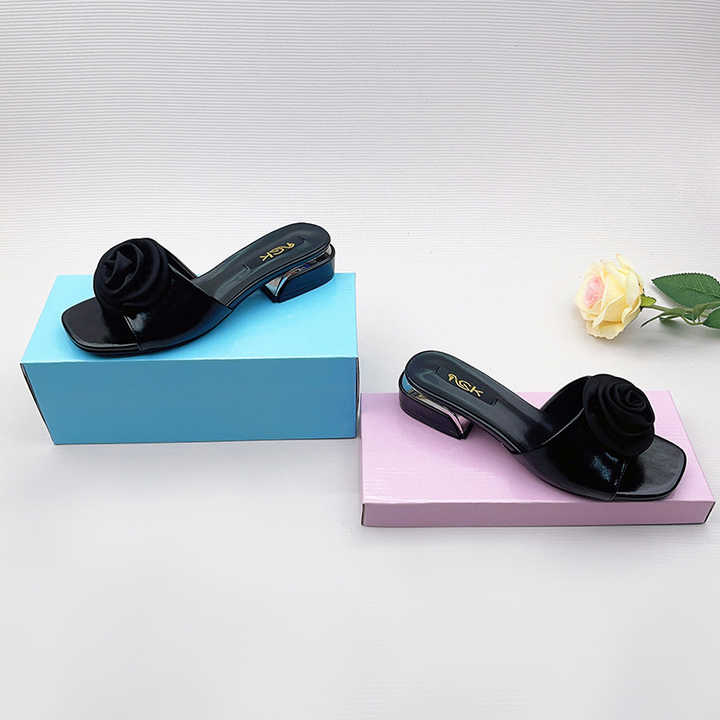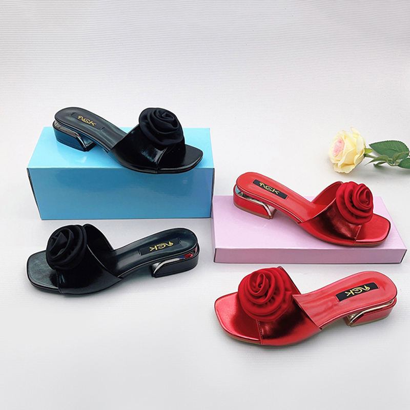 Y 37-42 vendita calda all'esterno pantofole con tacco medio squadrato decorate a rosa Casual e comodi sandali con tacco basso