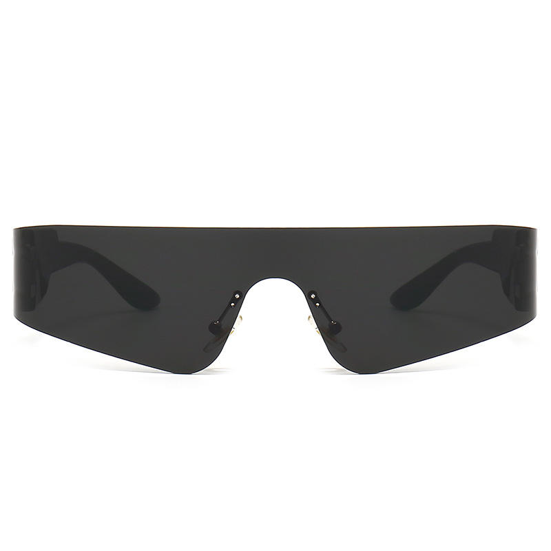 Y2K 2023 alla moda Cyberpunk occhiali da sole con visiera rettangolare UV400 occhiali da sole avvolgenti senza montatura per PC