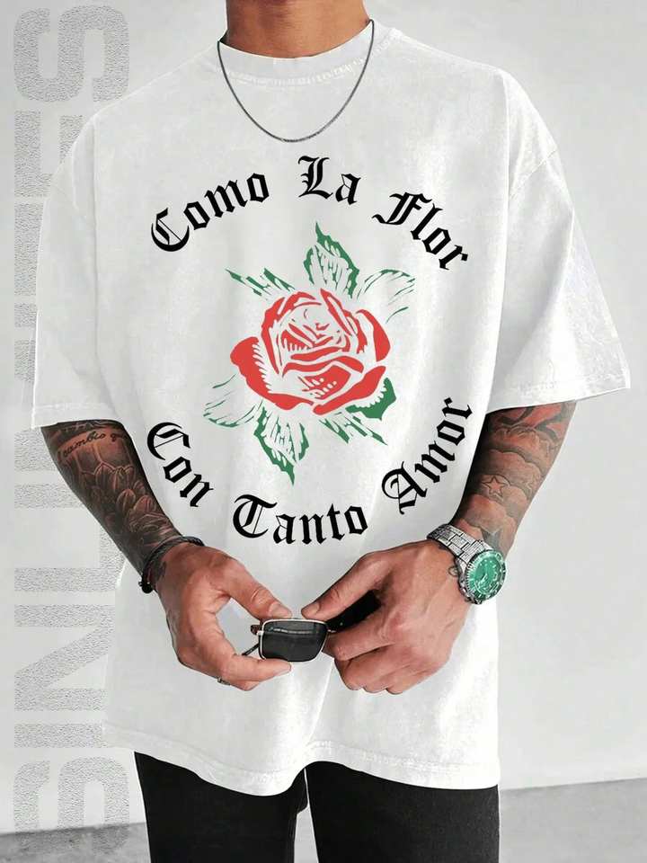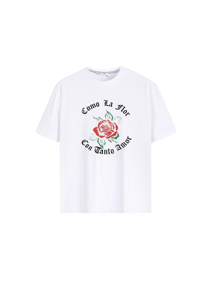 Y2K Flower Print T-Shirt Unisex Loose Round Neck Casual Solid Color Cotton Jersey Short Sleeve Festival Gift Front Logo