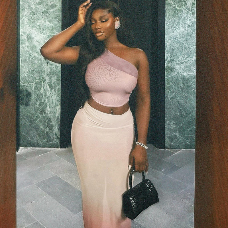 Completo Y2K due pezzi con gonna lunga, Abbigliamento donna moda sexy casual, Completo gonna lunga color block, Estate 2025