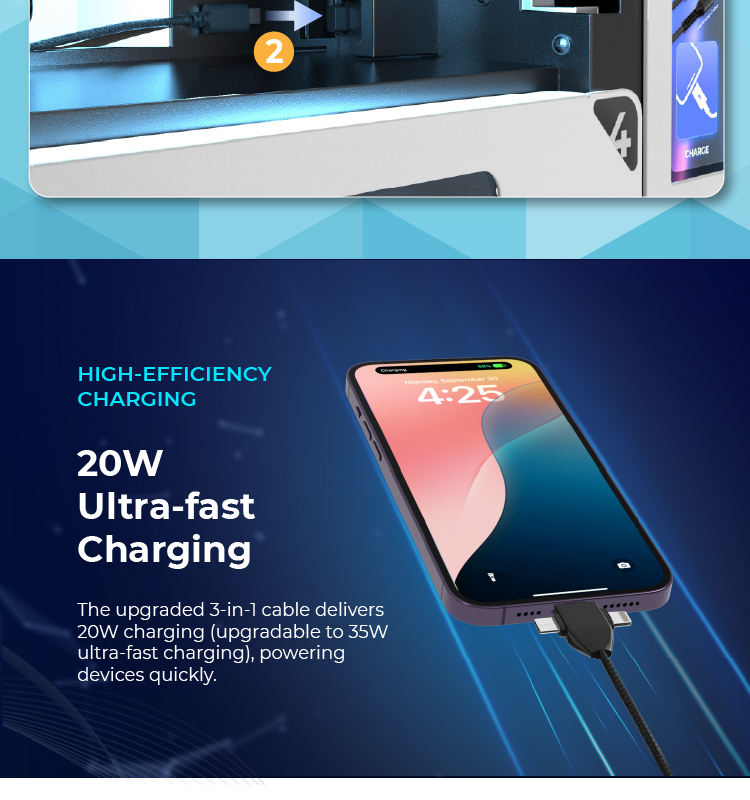 Built-in cables:16 x 3-in-1 charging cables