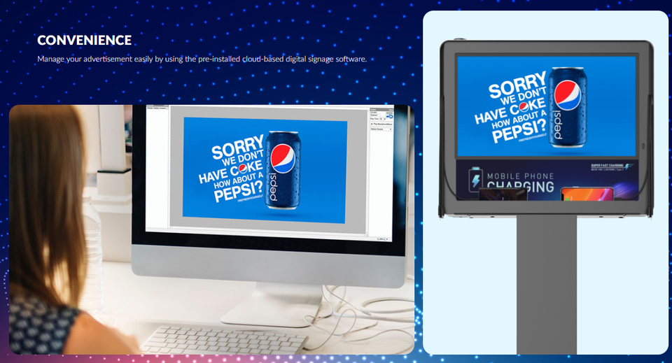 Nome del prodotto:Stazione di ricarica per pubblicità Video da 21.5 'con supporto da pavimento
