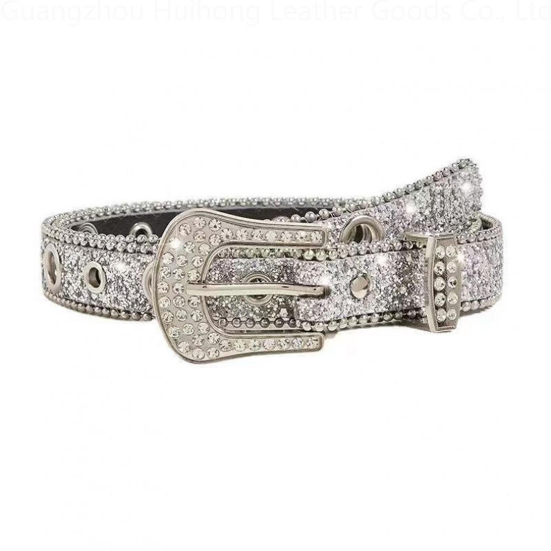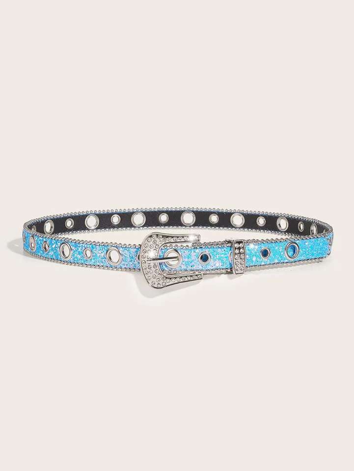 Cintura in Pelle PU Glitterata Stile Y2k con Fibbia Decorata con Strass