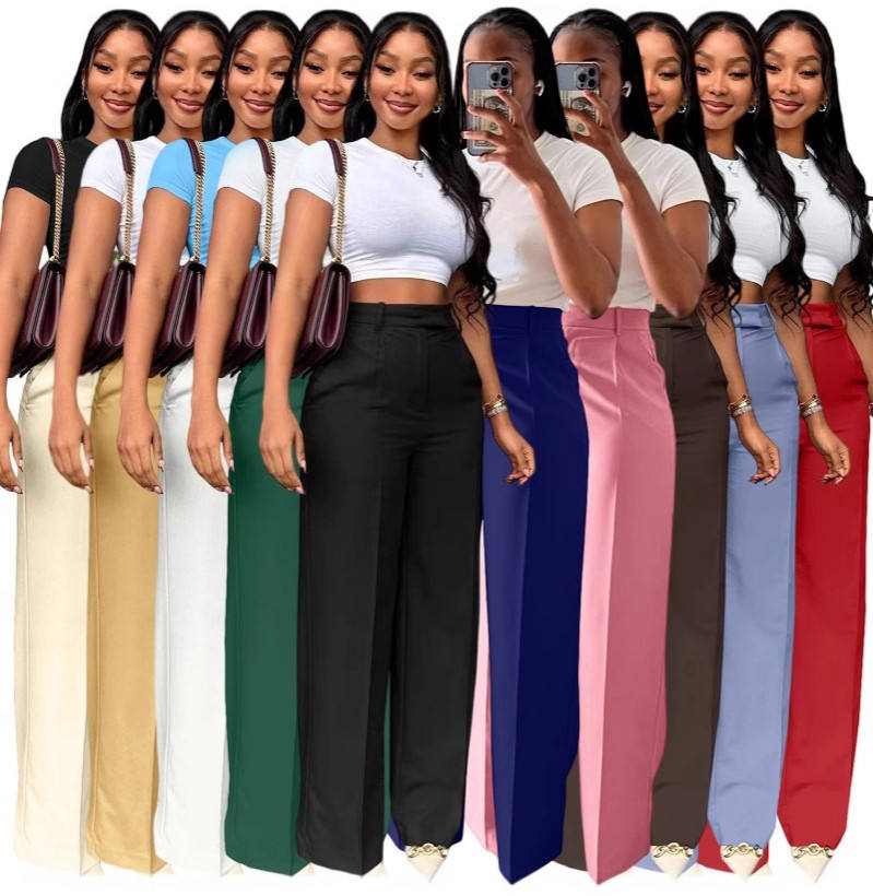 Y6012 Pantaloni Personalizzati Primavera-Autunno per Donne, Vita Alta, Gamba Larga Dritta, Pantaloni Casual da Ufficio per Signore