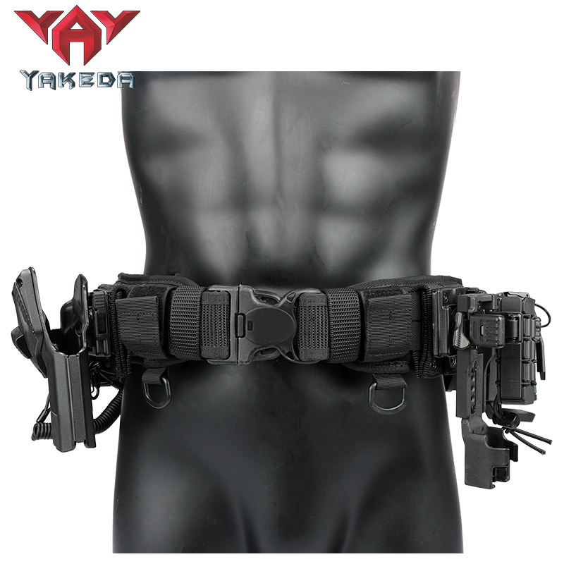 YAKEDA Tactical Belt Men Black Padded Lightweight MOLLE 11-pieces Set Pouch Stick Bag Duty Utility Waist Tactical Belt