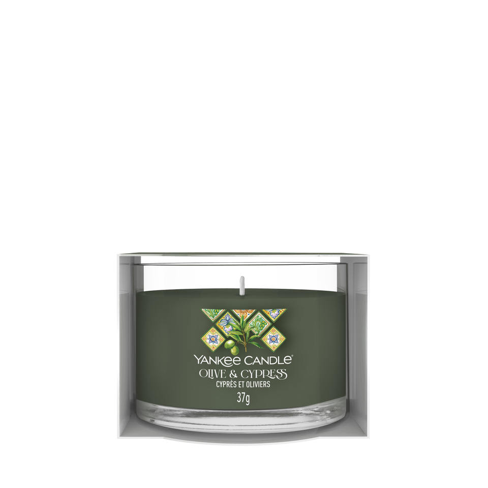 YANKEE CANDLE - CANDELA VOTIVE IN VETRO OLIVE AND CYPRESS