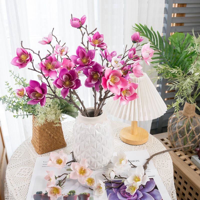 YC1025 Magnolia di seta artificiale lungo stelo ramo artificiale fiore di simulazione Magnolia per la decorazione della tavola di nozze