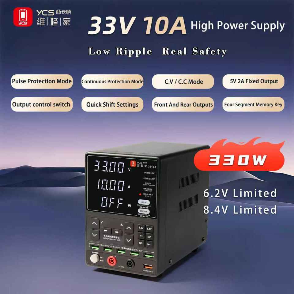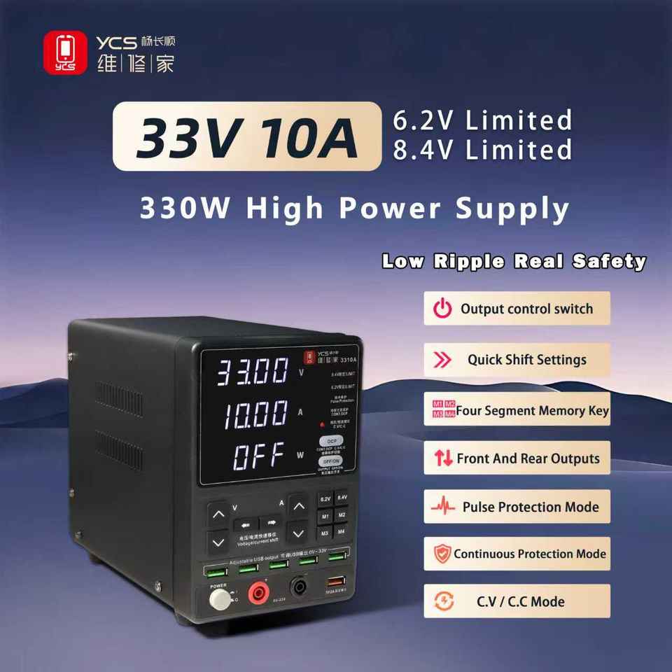 Alimentatore YCS 3310A 3V 10A 330W ad Alta Potenza con Bassa Ondulazione, 3 Modalità di Protezione Reali per Manutenzione Telefoni Cellulari e Riparazione Cortocircuiti