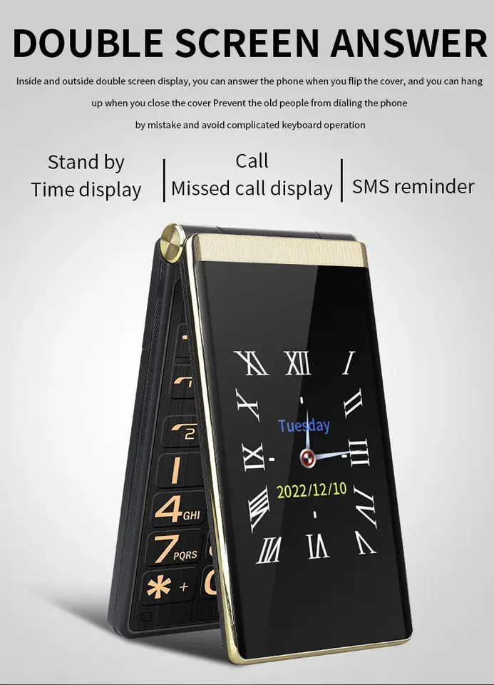 YEEMI M1 GSM 2G Flip telefono cellulare per gli anziani Dual Sim Real 1800mAh doppio schermo supporta russo chiave a buon mercato cellulare