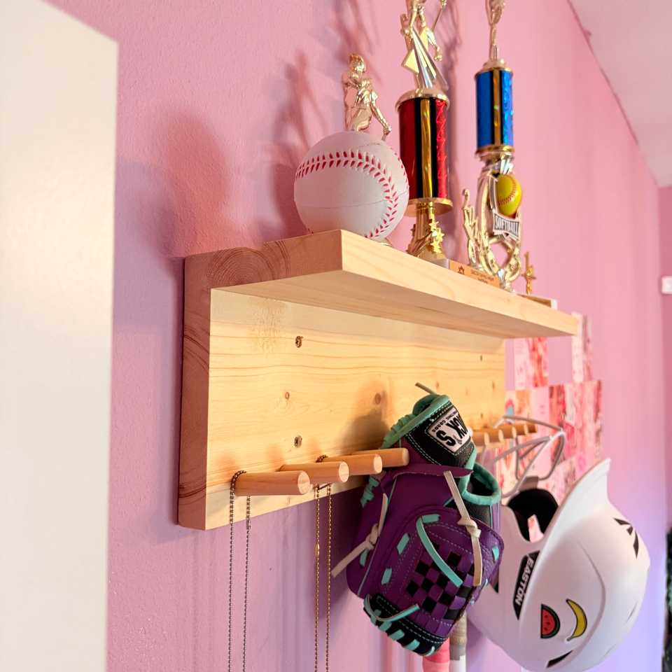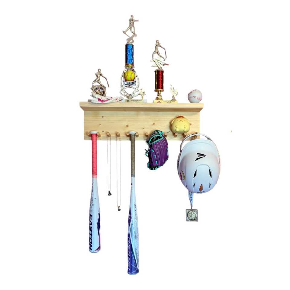 Portaoggetti per Softball/Baseball a 2 livelli da parete, supporto per accessori fatti a mano, 11 Bat 6 Ball, il deposito include il trofeo