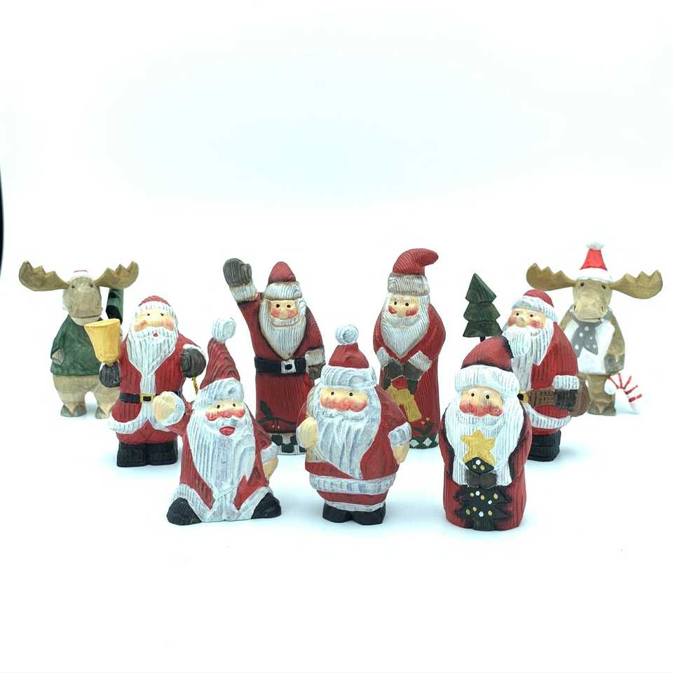 Hand Carved Wood Sculpture,Wooden Santa Claus Figurine,Wood Statue