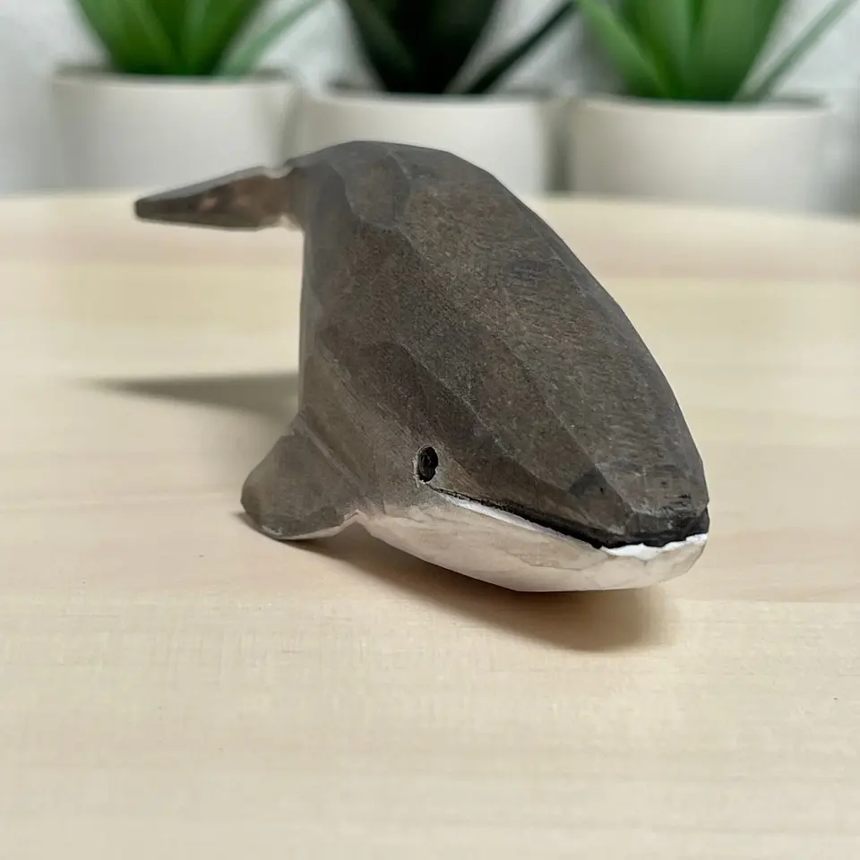 YEEYAYA Statuetta di Balena Grigia Intagliata a Mano da 4,2 Pollici, Artigianato in Legno e Bambù per Decorazione Casa, Tema Vita Marina